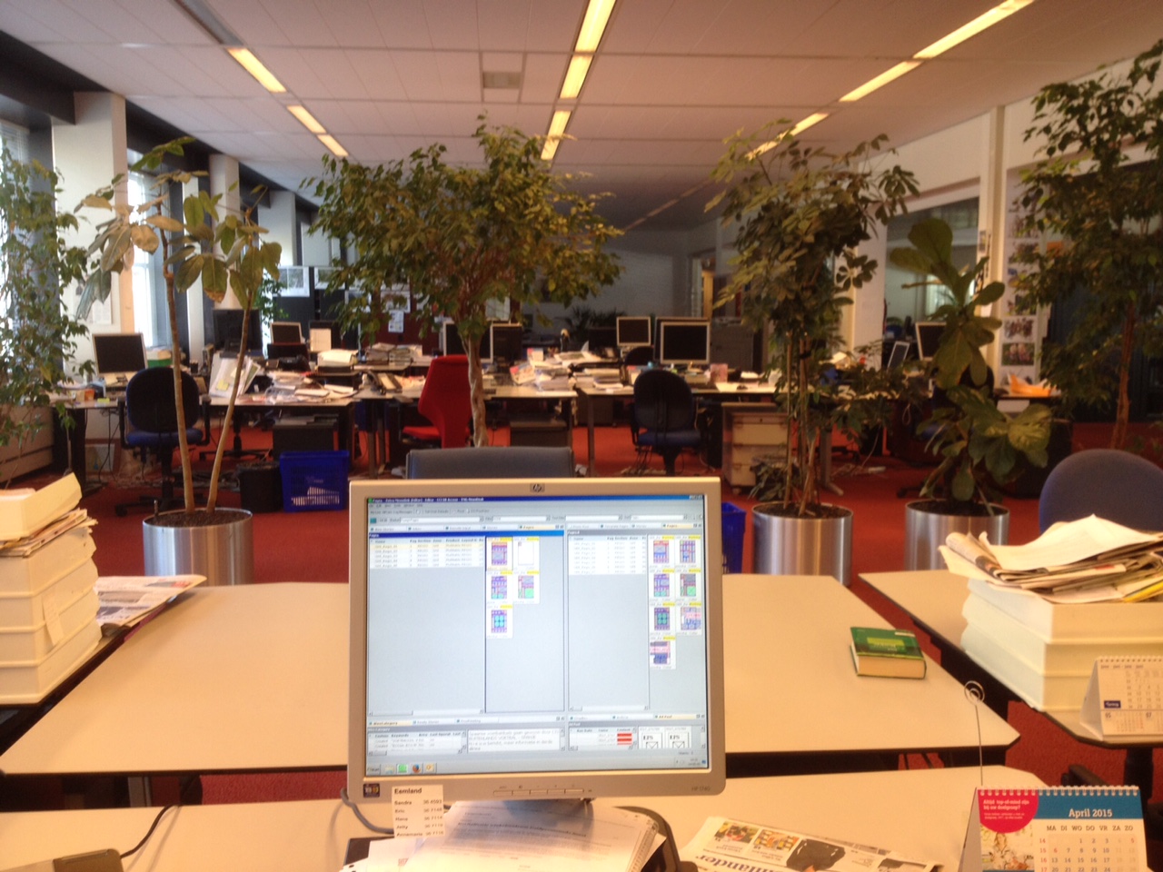 De afgelopen dagen had ik dienst bij de krant. Donderdag was het een officiële vrije dag, maar niet voor mij. Ik had een combinatie van weekenddienst (want vrije dag) en schuifdienst. Het woord schuifdienst is volgens mij door mijn collega/chef Peter Schat bedacht. Het is versimpelde voorstelling van de taak die je die dag hebt. Je schuift de krant door naar de drukkerij. Dat is het principe achter een schuifdienst.