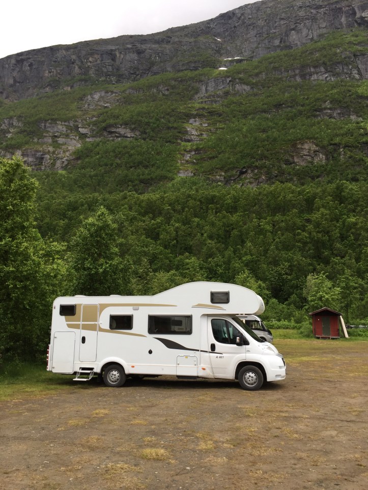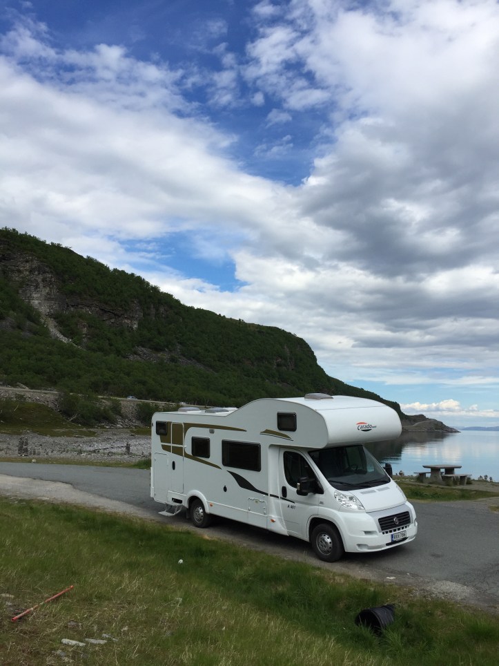 Maar het vreemdste schijnt te gebeuren als het personeel van de Noordkaap-gebouwen het terrein heeft verlaten. Dan halen de globetrotters de enorme keien die er voor de toegangsweg naar de wereldberoemde globe op de uiterste punt liggen, weg. En parkeren ze hun camper pontificaal op die plek voor een ‘unieke’ fotosessie. We hebben het schouwspel maar niet afgewacht. Een paar kilometer van de commerciele Noordkaap ligt echt het uiterste stukje van Europa. Vlak daarbij is een parkeerplaats. Een onontdekt plekje waar maar twee andere campers staan. We zetten de onze erbij. Afstand nemen van de groep waar we tegen wil en dank bij zijn komen te horen, voelt wel even goed.